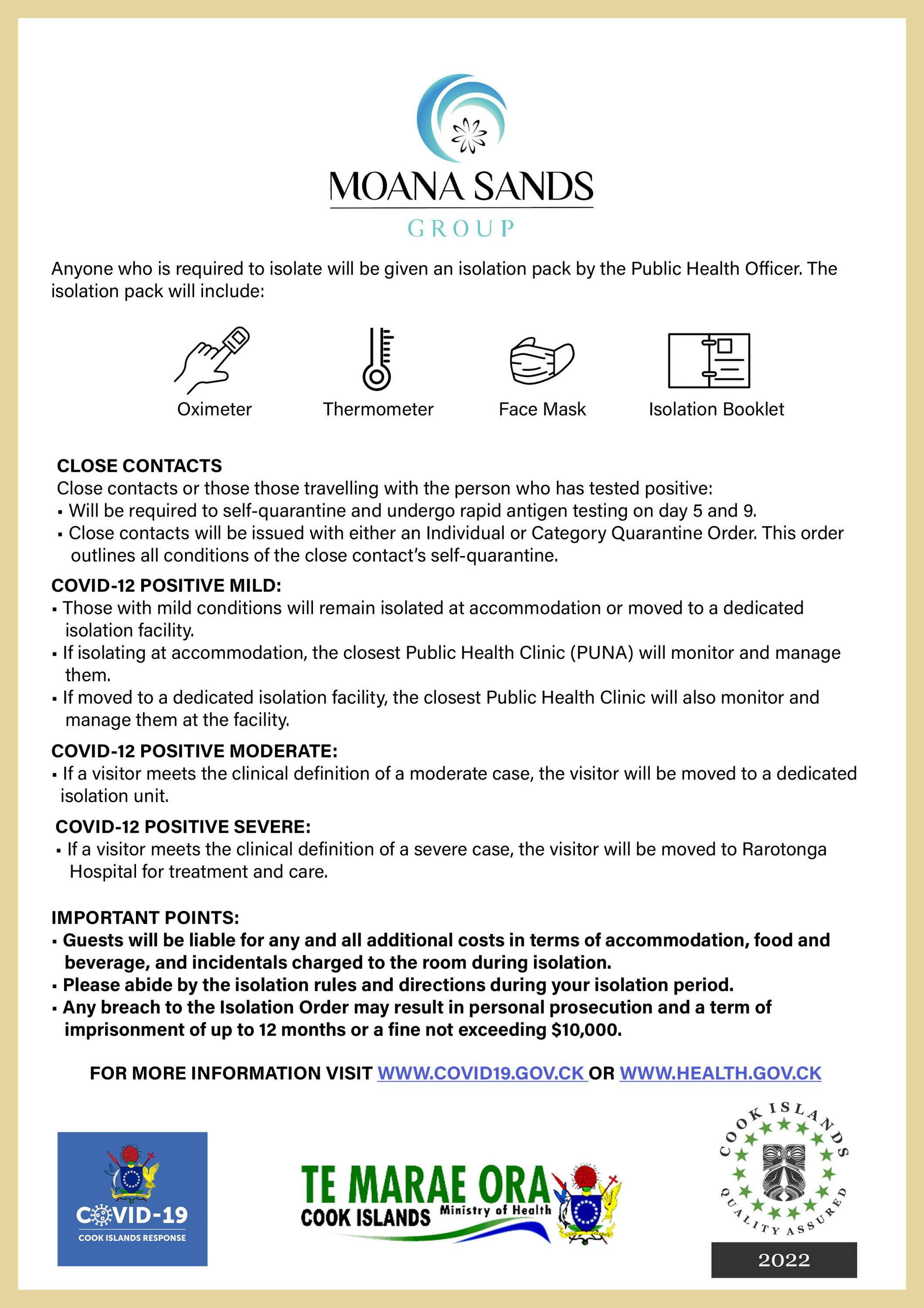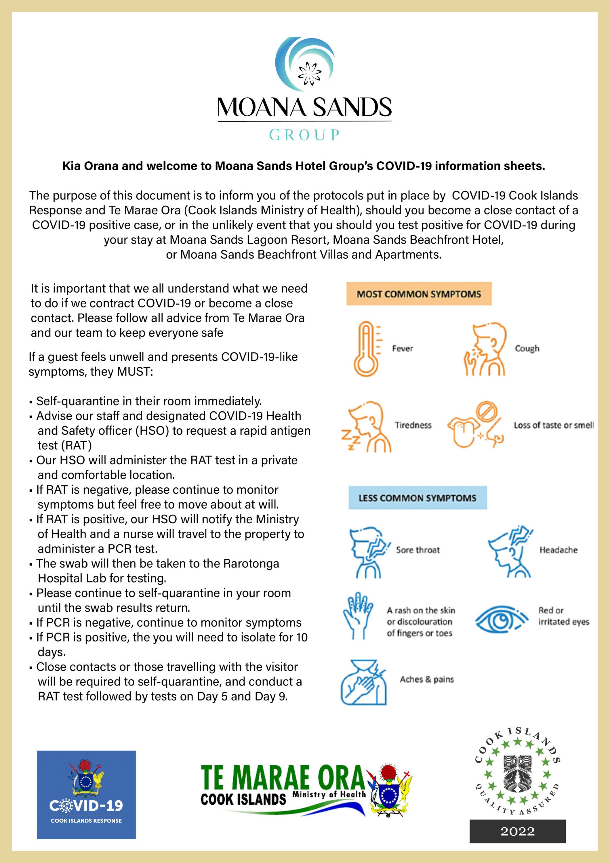 Here at the Moana Sands Group, we have introduced the following elevated hygiene and prevention measures to ensure your peace of mind when you stay with us at our Rarotonga Resort Accommodation:
